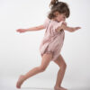 Romper super cómodo, con detalle de alforzas delanteras y el acabado de cierre es de gota, cuenta con un botón en la espalda. El corte es ampón en la cadera que lo hace además de tierno, muy cómodo para cuando los cambias, cuando están aprendiendo a caminar y cuándo ¡lo logran! Utilizamos broches prácticos y seguros, no te preocupes de alergias ni de falta de practicidad.