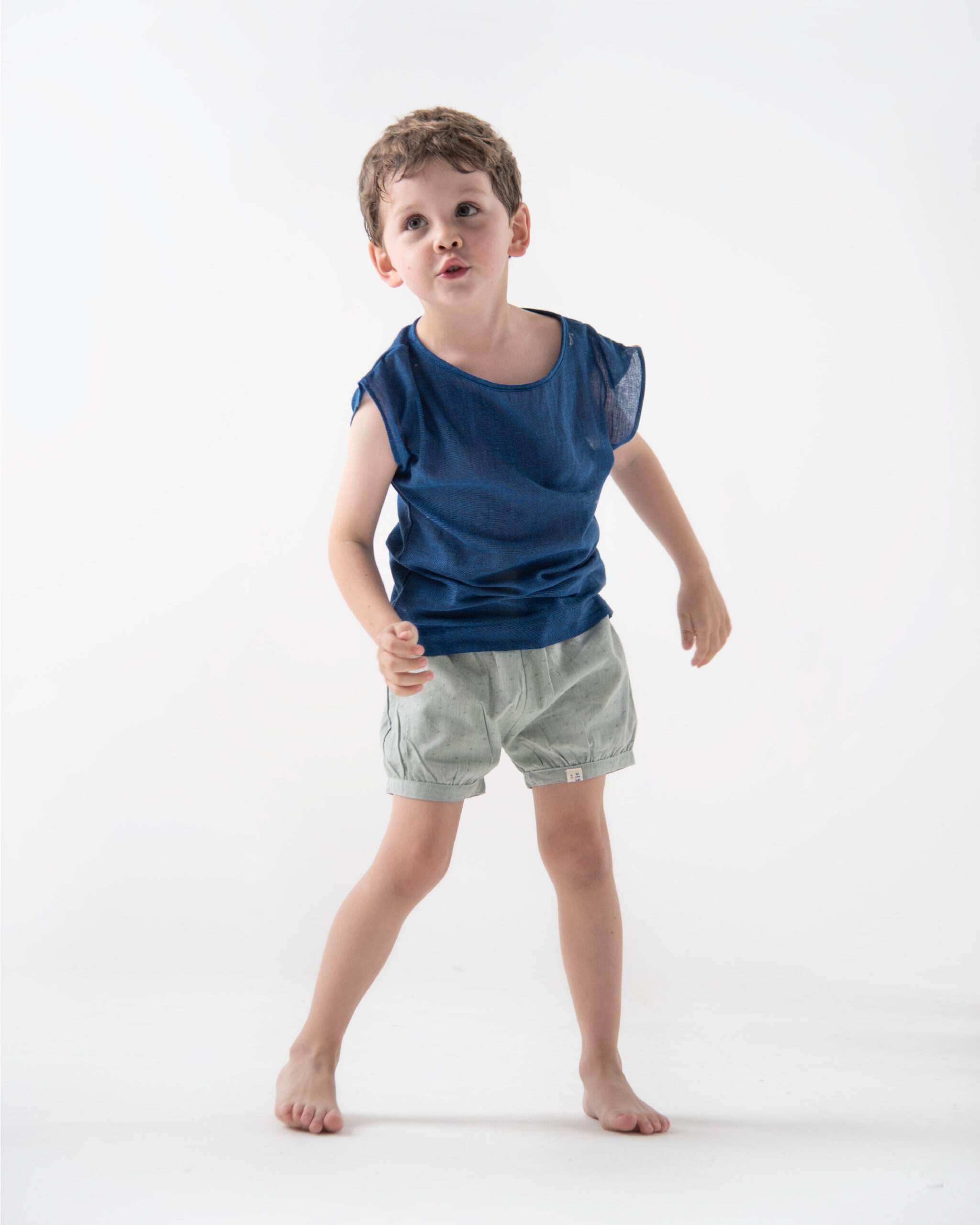 Short cortito, cómodo y perfecto para jugar sin parar. Hecho con tela mexicana 100% de algodón, suave y fresca para correr, saltar o inventar aventuras. Con resorte en la cintura, bolsas laterales amplias y una bolsita trasera para guardar tus pequeños tesoros.