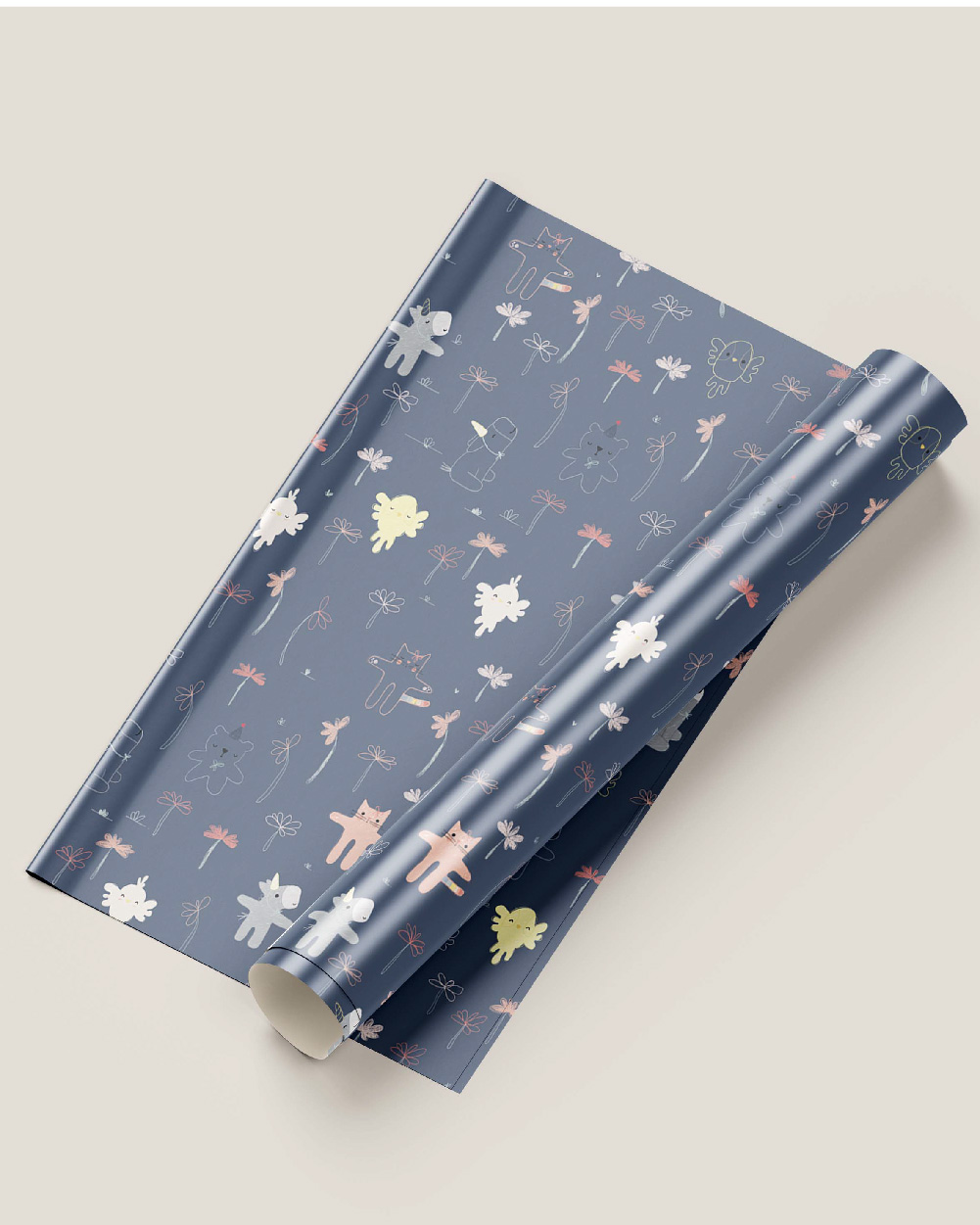 5 pliegos de papel de envoltura con los personajes de totito totó en el prado, Colección “Made of Magic”